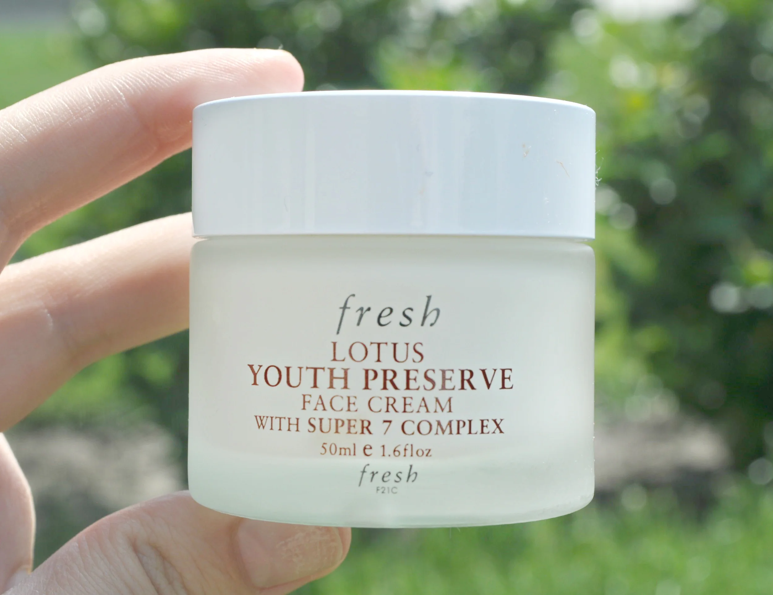 "Lotus Youth Preserve Face Cream is a lightweight, daily antiaging moisturizer for all skin types, proven to minimize and prevent signs of aging, deliver intense hydration, and improve elasticity. It is formulated with Fresh’s proprietary super 7 complex—an age-defying, hydrating, and radiance-boosting blend of seven super-charged ingredients to defend against wrinkles, preserve collagen, support the production of hyaluronic acid, seal in moisture, and soften the skin."